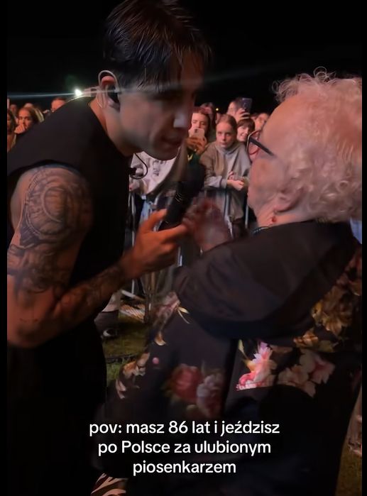 Na swoim oficjalnym profilu Dawid Kwiatkowski podzielił się wyjątkowym nagraniem z koncertu. Wideo przedstawia poruszający moment, w którym artysta prezentuje publiczności swoją wierną fankę – panią Aurelię. Ta 86-letnia kobieta nie tylko zasiadła na widowni, ale również... zatańczyła z artystą na scenie! Widać było, że dla niej to chwila pełna wzruszeń, szczerego szczęścia i dumy.